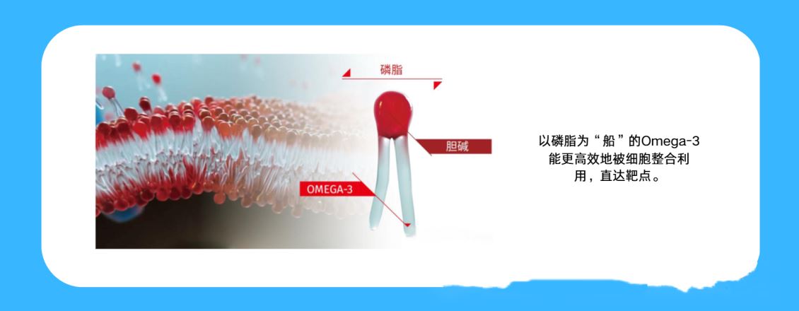 生物利用度:磷脂是细胞膜的重要组成部分。以磷脂为“船”的Omega-3能更高效地被细胞整合利用,直达靶点。